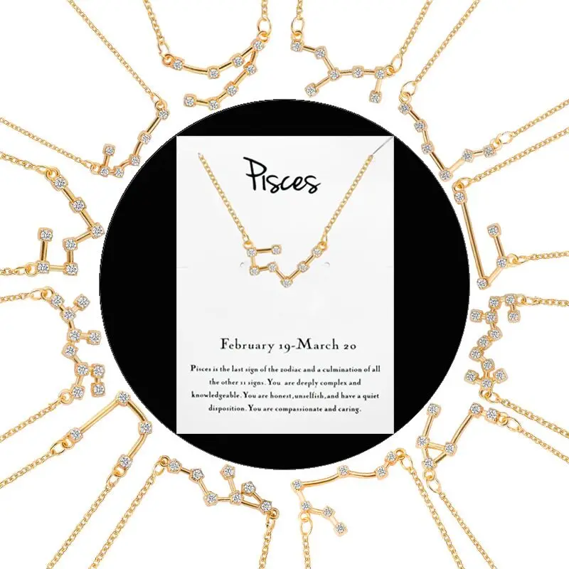Ожерелье с созвездием; 12 звезд зодиака циркон; Астрология галактика Созвездие Знак воротник; медное колье-подвеска