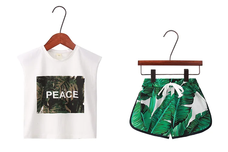 2021 Summer children clothes sets 1-7T Plantain leaf print boys & girls
