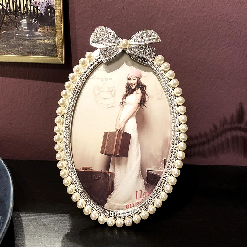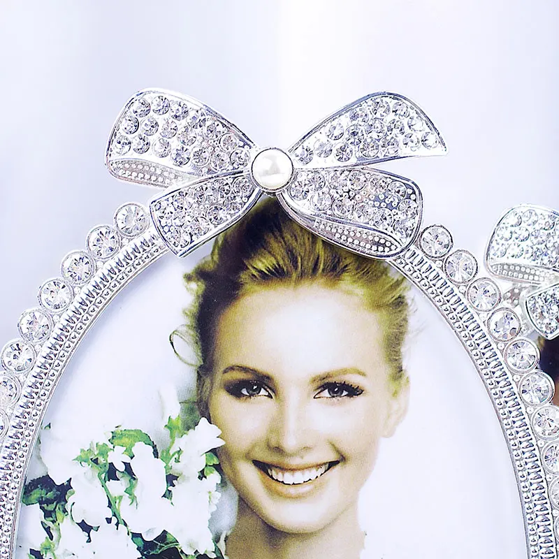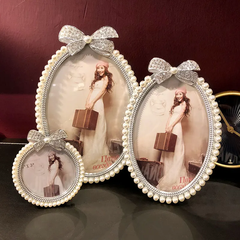 Блестящая Посеребренная оправа для картин из цинкового сплава с белым жемчугом и прозрачные стразы, ювелирная лента, 3 размера, круглые овальные формы