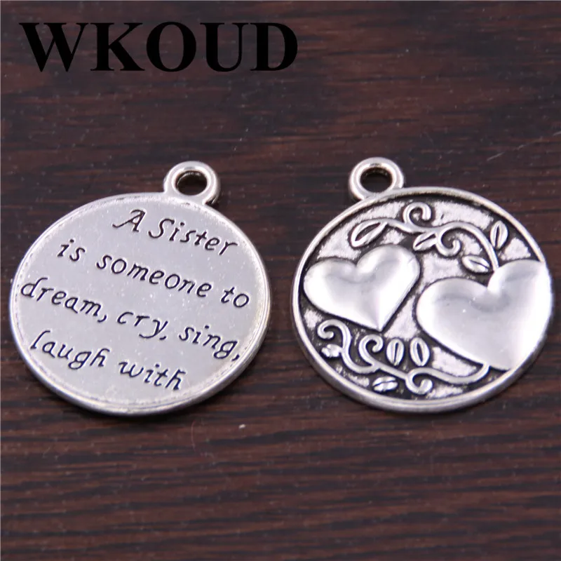 6 шт. Посеребренная Подвеска Sister Is To Dream,Cry,Sing, Joke с металлической биркой, подвеска 22 мм A199