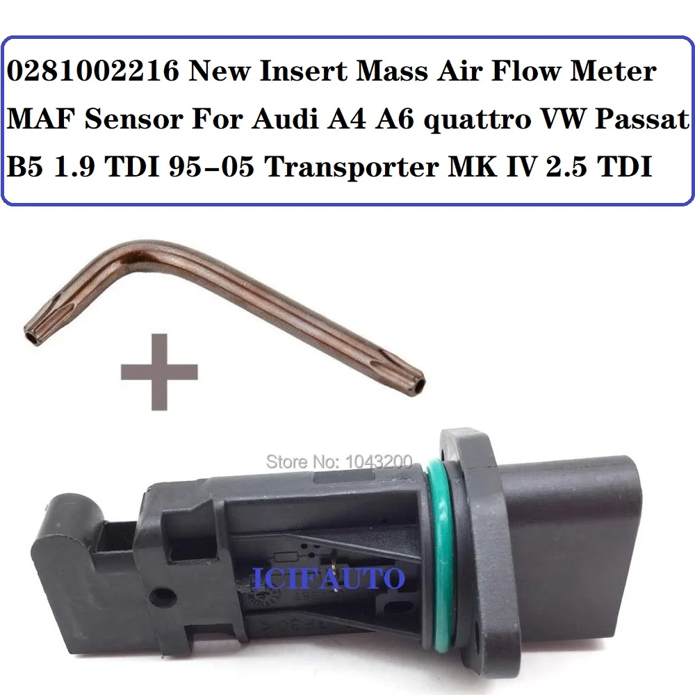 0281002216 Новый массовый расходомер воздуха MAF сенсор для Audi A4 A6 quattro VW Passat B5 1,9 TDI 95-05 Transporter MK IV 2,5 TDI