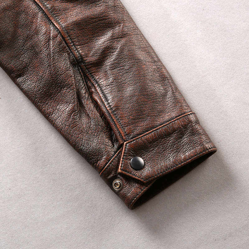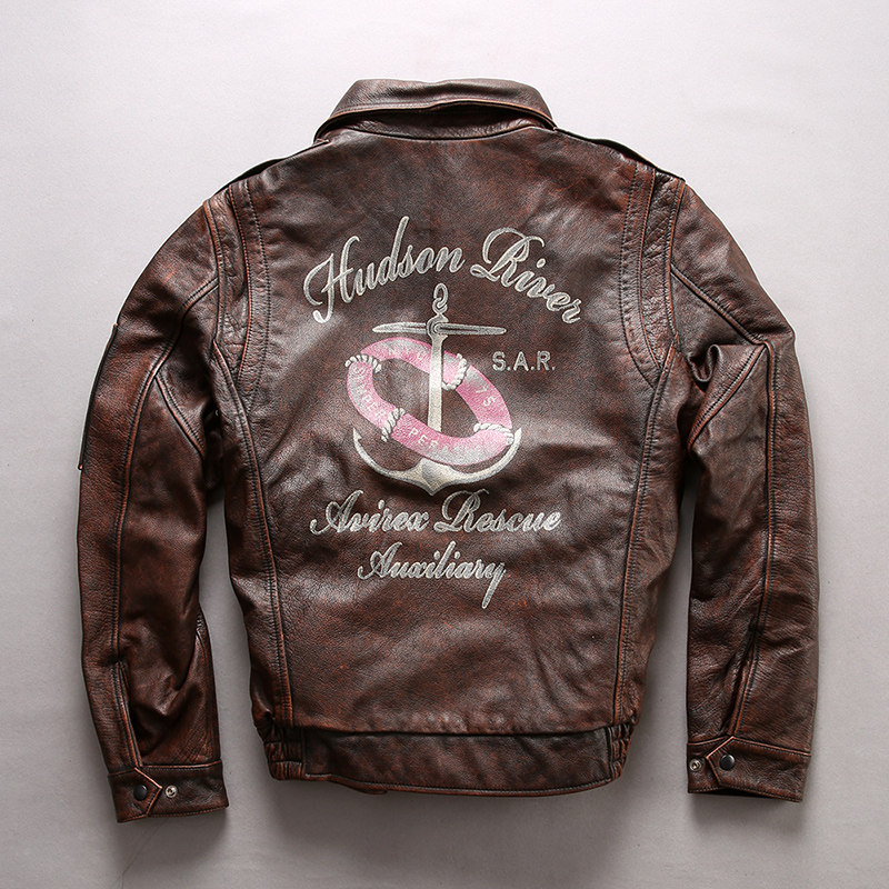 Мужская куртка из натуральной воловьей кожи с рисунком черепа черная