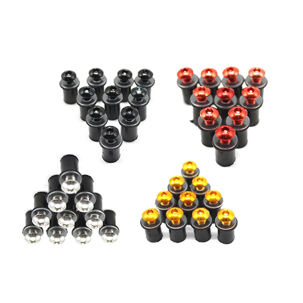 Хит 10 шт./лот, универсальные болты для лобового стекла, винты для лобового стекла, комплект 5 мм Фитинг: для BMW S1000RR HP4 S1000XR Пожалуйста, убедитесь, что эта часть подходит для вашего мотоцикла перед заказом. Материал: анодированный алюминий Цвет: 4 вида цветов, включая золото, серебро, красный, черный Размер болта: M5 x 16 мм Количество: 1 партия (10 шт.) Упаковка включает: 10 анодированных алюминиевых болтов с ЧПУ (один цвет) 10 резиновых устьевых орехов 10 пластиковых шайб