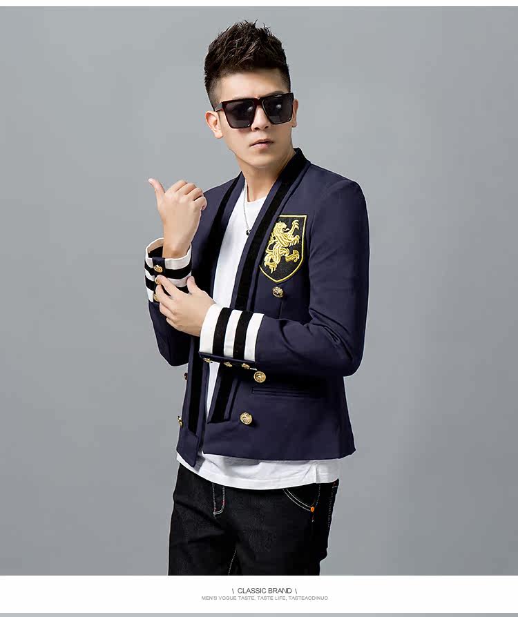 Новинка 2018 осенняя мужская куртка модная индивидуальная с вышивкой повседневный Тонкий маленький костюм