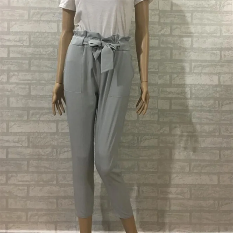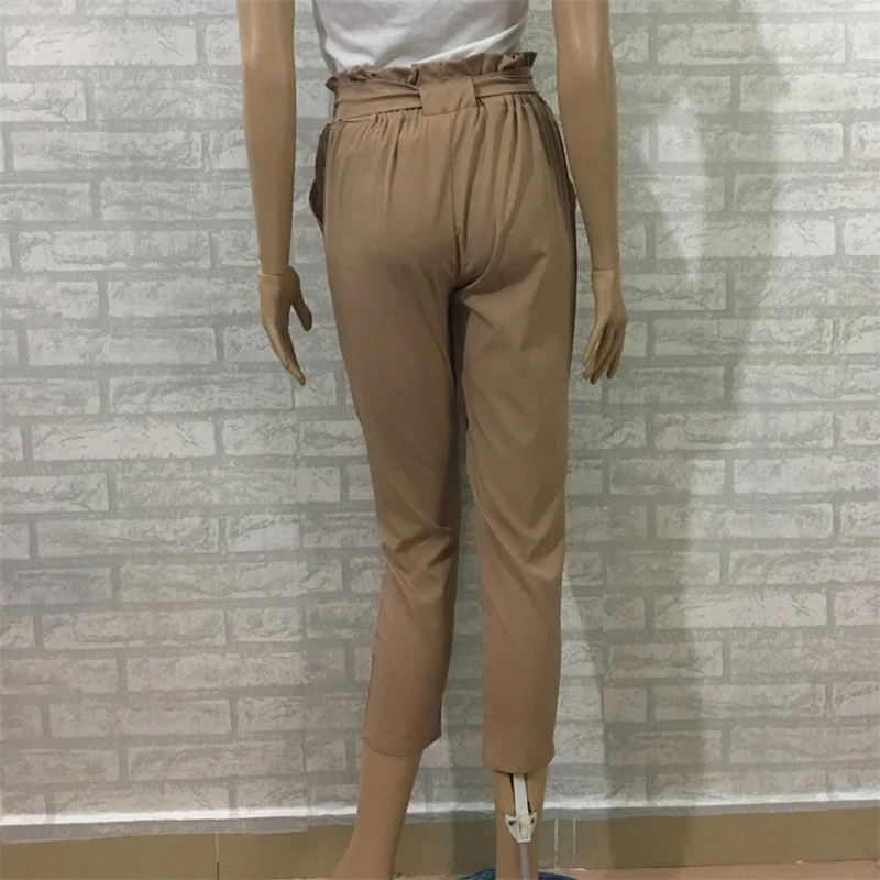 Женские брюки со свободным галстуком-бабочкой и оборками, повседневные однотонные с высокой талией и карманом, весенние женские брюки, женские брюки с поясом, низ 2020