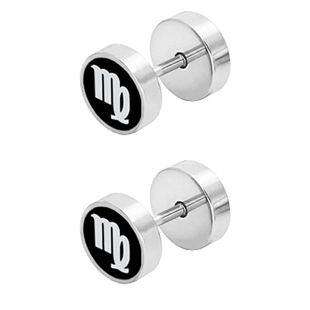 1 пара модных Нержавеющая сталь винт сережки-гвоздики, ухо пирсинг Вилки с знак зодиака для мужчин и женщин