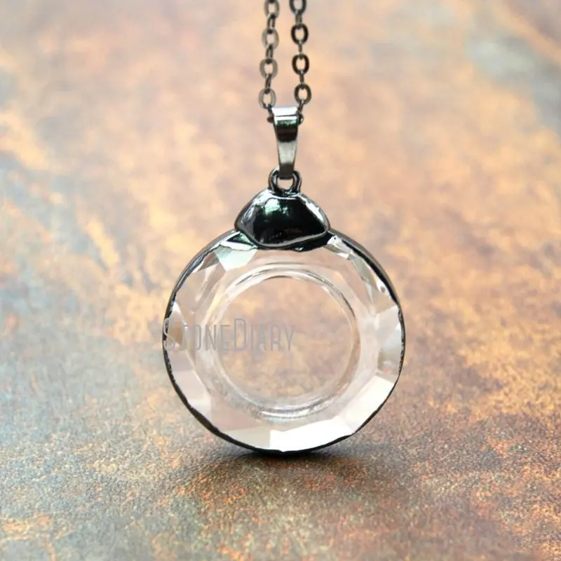 NM14702 Glass Crystal Chains Necklaces Gun Black Plated Faceted Hoop Chains Necklaces 18inch-32inch