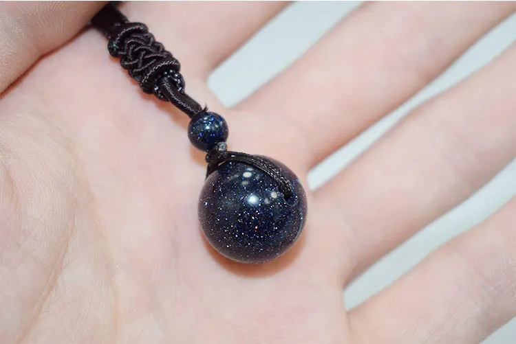 Голубой песчаник веревка цепочка Кулон 16 мм бусы шар ожерелье передача Lucky Love ювелирные изделия натуральный камень модные аксессуары для мужчин