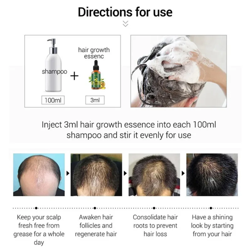 Мы отправим вашу посылку в течение 24 часов после оплаты и предоставим Вам эффективный номер отслеживания в течение 24 часов.Особенности:1. Женьшень, имбирь, многоцветный полигонат, Анжелика и другие ингредиенты эффективно питают кожу головы, способствуют росту волос и улучшают выпадение волос.2. Раствор для роста волос с использованием растительных ингредиентов может эффективно выдержать волосы и предотвратить их выпадение.3. Питают корни волос, пробуждают волосяные фолликулы и стимулируют волосяные фолликулы для роста более здоровых волос.4. Обеспечивает питательные вещества, необходимые для роста волос, улучшает среду роста и стимулирует рост волос более густыми черными волосами.5. Контроль масла для предотвращения засорения пор, оставляя волосы свежими и эластичными.6. Пусть у вас темные волосы и густые волосы, и вы можете сделать свою любимую прическу, улучшить внешний образ и темперамент.