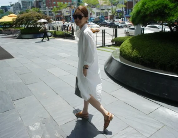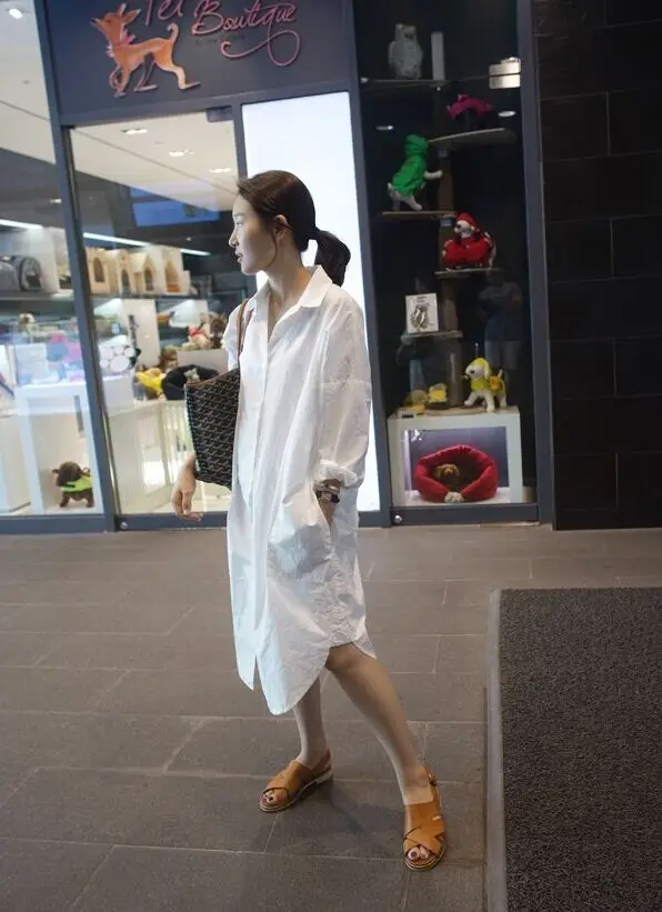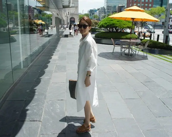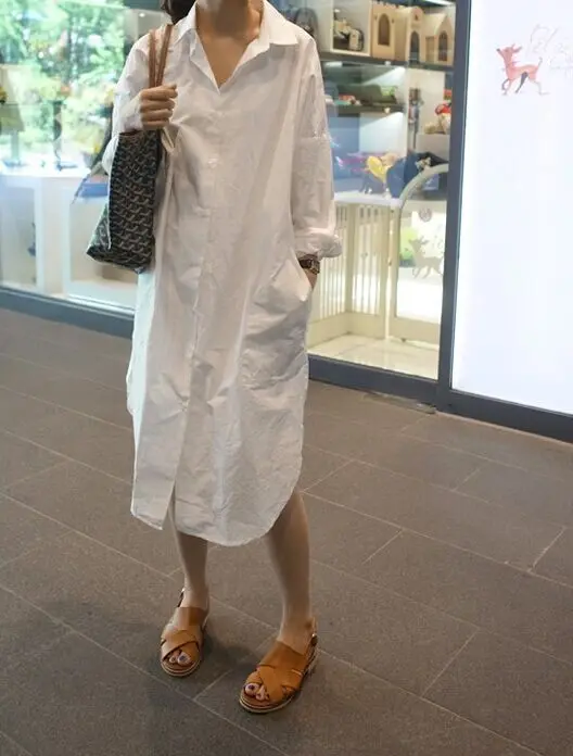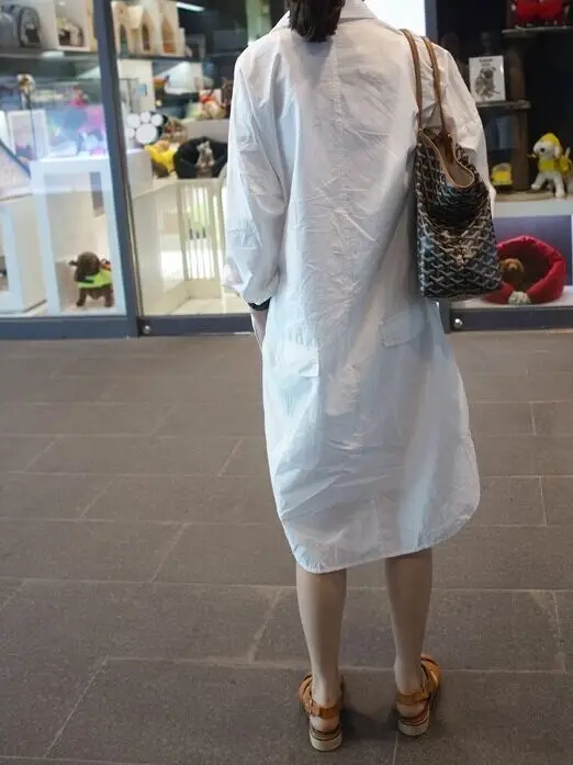 Женская длинная рубашка на пуговицах, белая свободная блузка с карманами и звездами, модель AH952 на осень