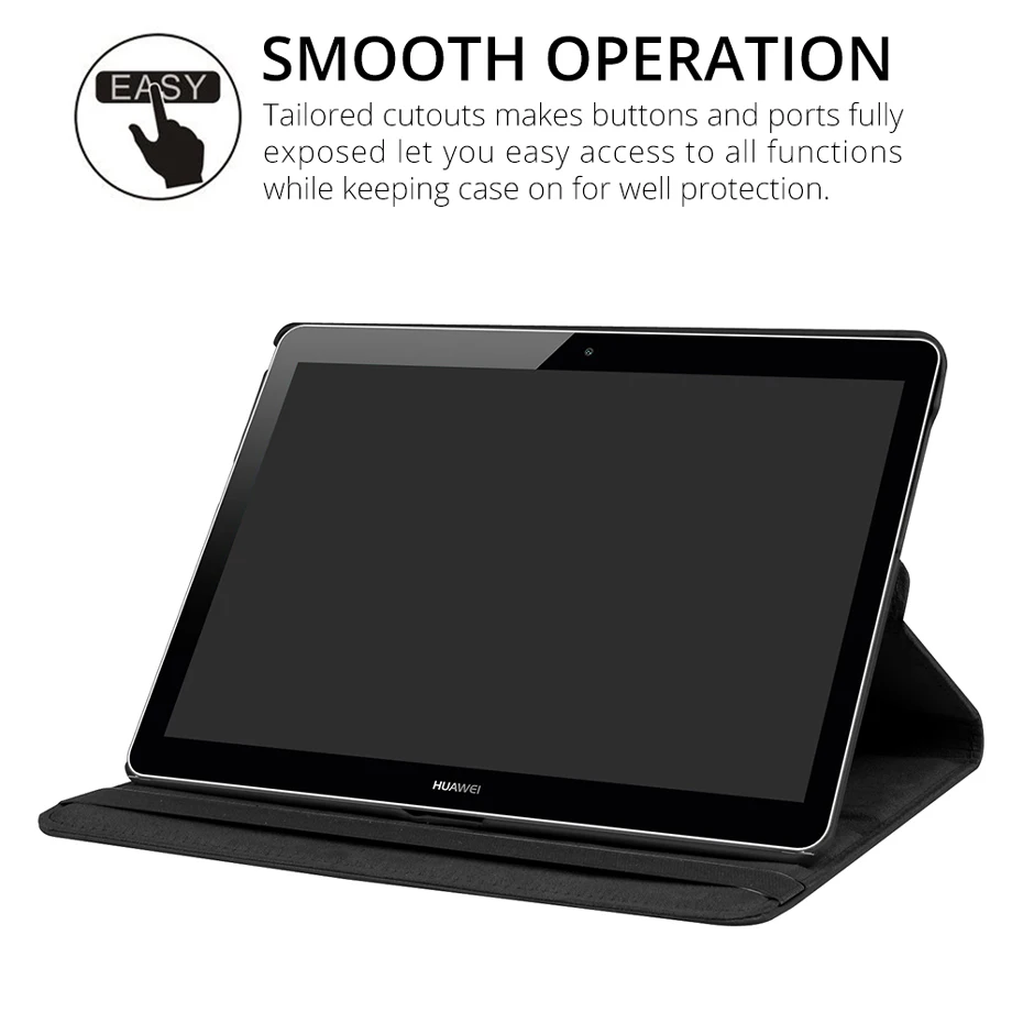 Вращающийся на 360 градусов чехол, легкий и защитный. Защищает ваш планшет от царапин, пыли, ударов. Удобное положение подставки для просмотра фильмов или ввода текста. Точные вырезы для всех элементов управления и функций, легко установить или снять.