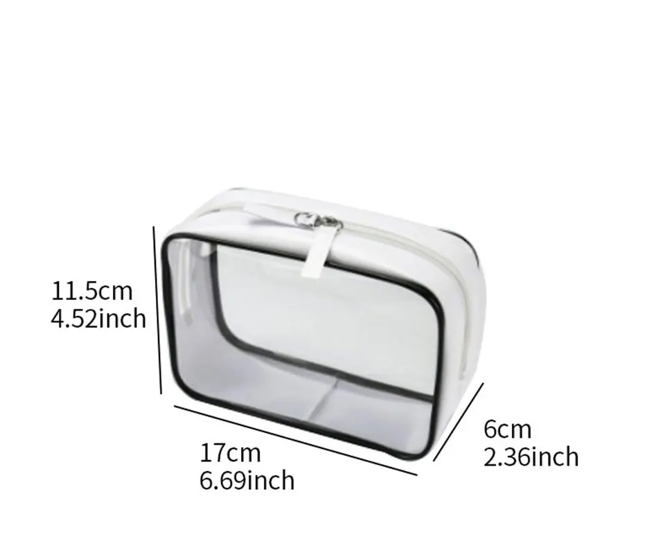 Технические характеристики Название: прозрачная косметичка из ПВХ для женщин и мужчин, дорожная косметичка на молнии, органайзер для макияжа, Сумка Для Хранения Туалетных принадлежностей, косметический набор, чехол Материал: ПВХ Ключевые слова: дорожная косметичка-органайзер, косметичка для туалетных принадлежностей, органайзер для туалетных принадлежностей, женские косметические Чехлы для хранения, косметический чехол для путешествий, сумка для мытья, портативная косметичка Цвет: белый Размер: 17x11,5x6,5 см В комплект входит: 1 косметичка для путешествий Описание