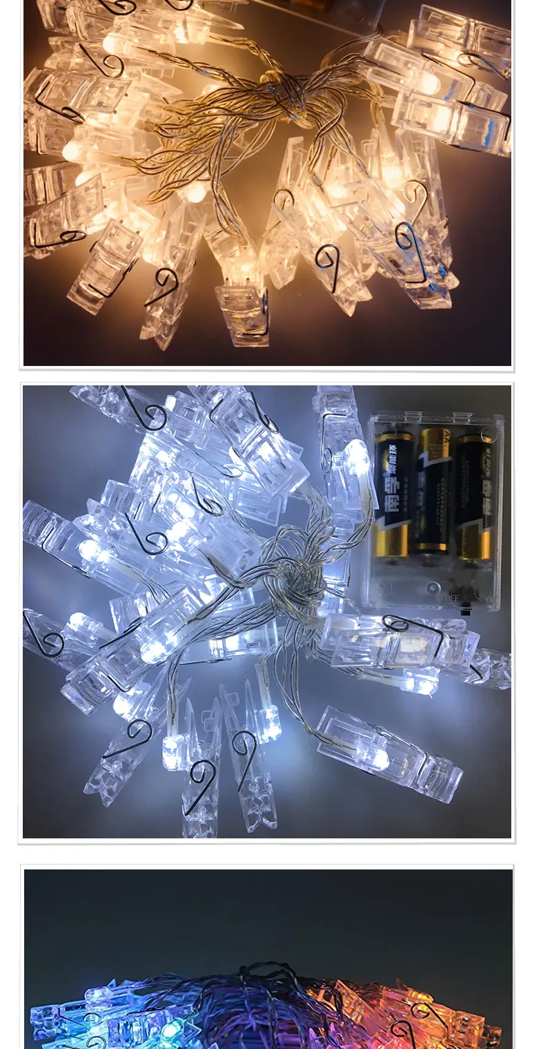 Светодиодная гирлянда с зажимами для фотографий 5 м 20 зажимов 220 В светодиодная