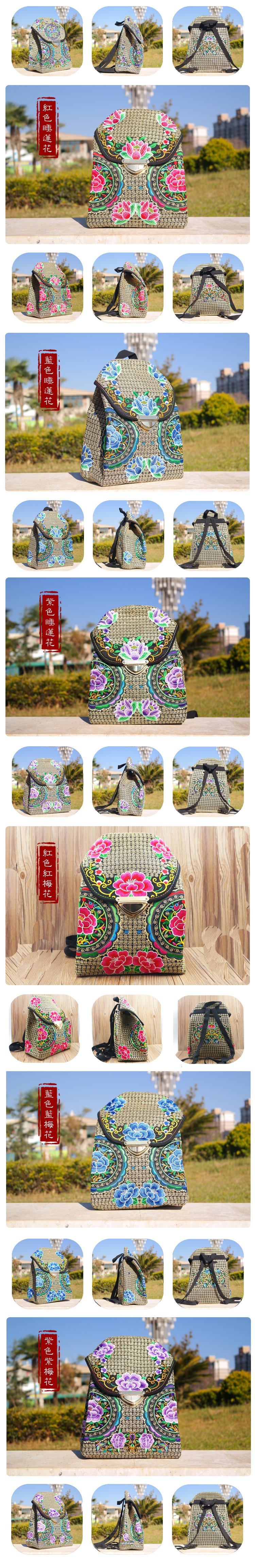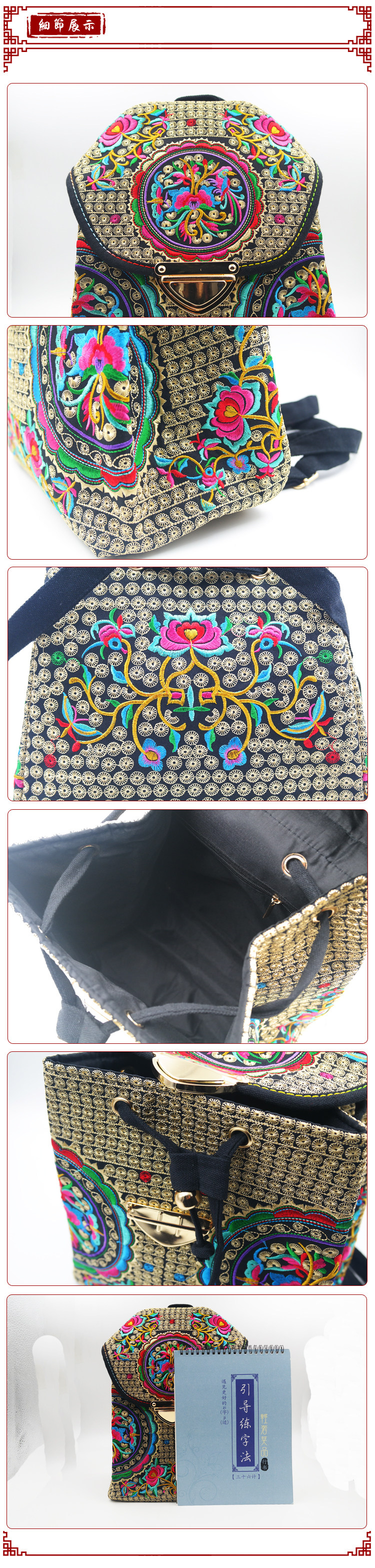 Женский холщовый рюкзак с винтажной вышивкой Этническая ВЫШИТАЯ дорожная сумка
