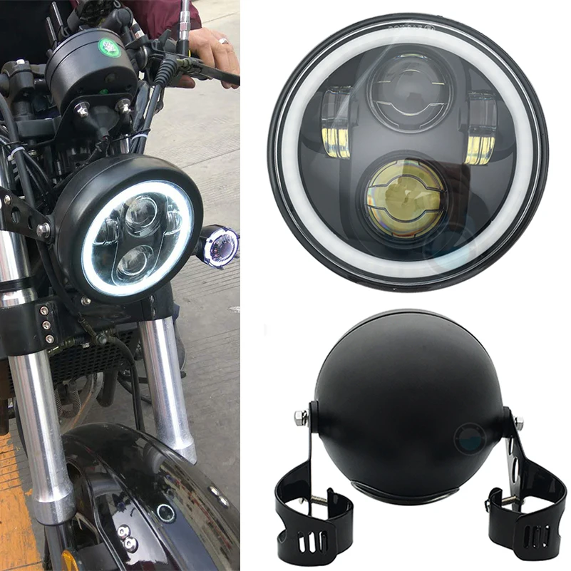 5,75 дюймов светодиодные фары для мотоцикла 5 3/4 "налобный фонарь с ангельским глазом для мотоцикла Sportster 883 XL883 FXCW/C, FXS, FXSB