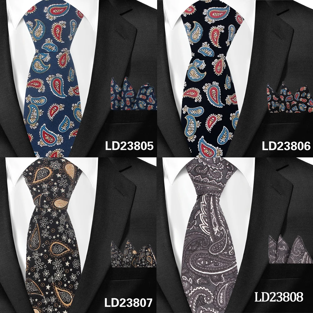 Мужской Галстук Пейсли Классические хлопковые галстуки и Hanky набор для мужчин формальные цветочные принты Галстуки Для Свадьба Вечерние Галстуки для жениха