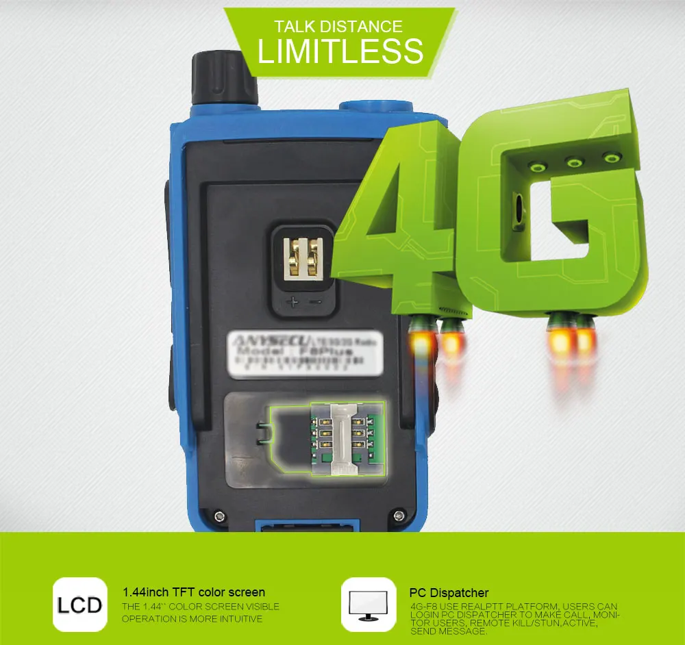 * Безграничное расстояние разговора, если охват сети | 4G-F8-это радио LTE/GSM/WCDMA, которое использует поток данных для общения, с областью данных, пользователи могут свободно общаться. |