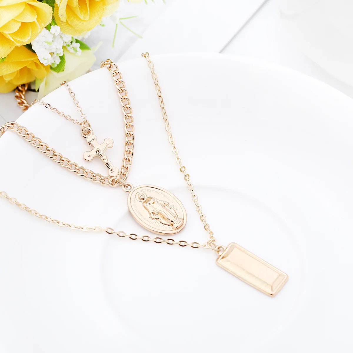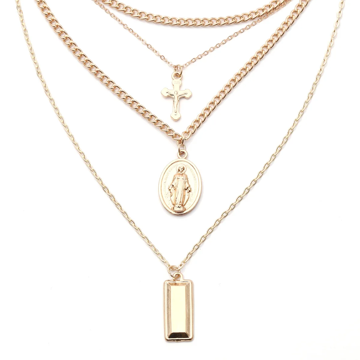 Многослойный нательный крест на цепочке ожерелье колье ожерелье s ювелирные изделия подарок для женщин (золото)