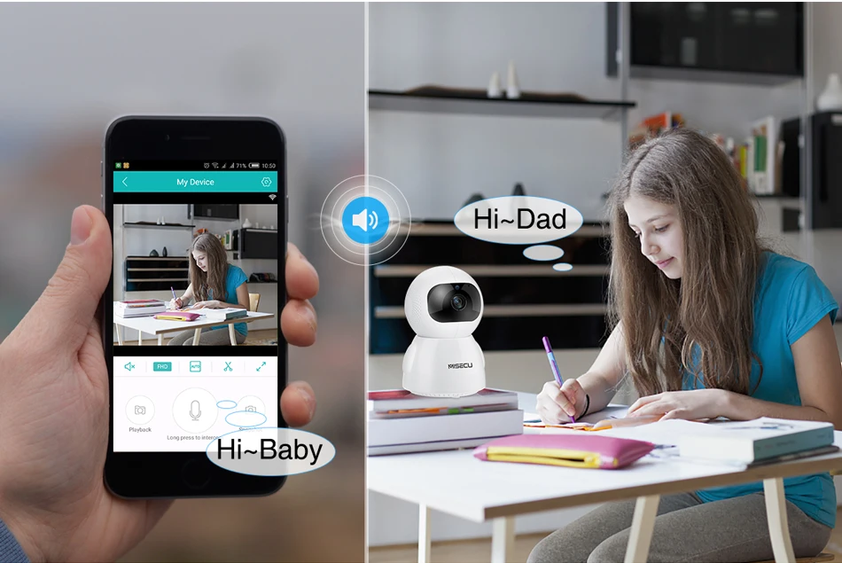 Камера имеет встроенный микрофон и динамик. Никогда не пропустите ни минуты с вашей семьей.