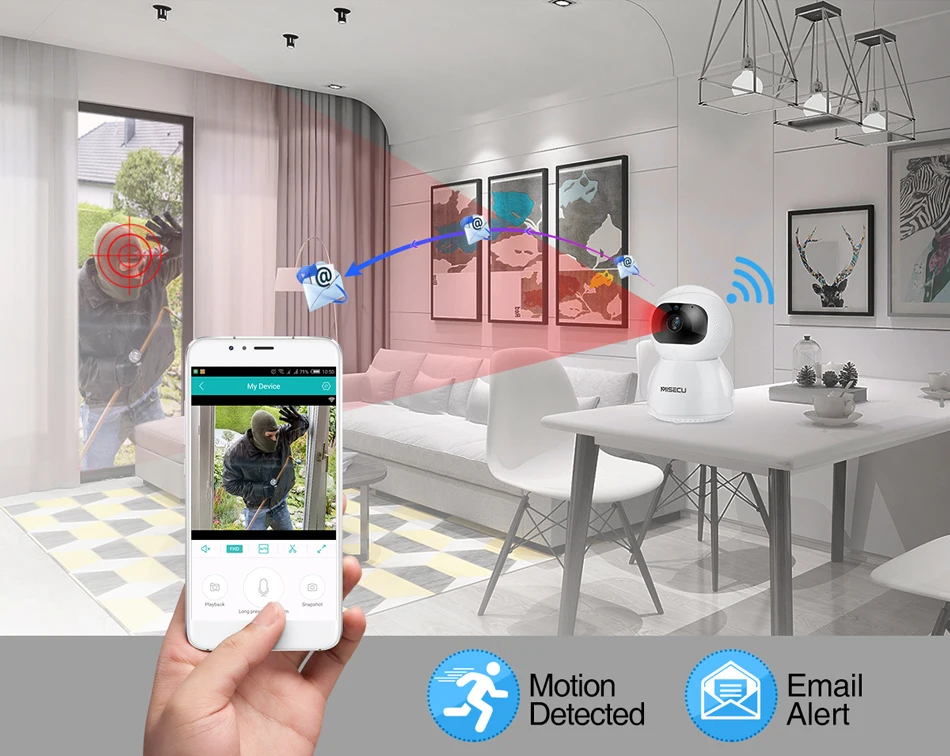 Умное Обнаружение движения помогает вам следить за каждым движением, происходящим в вашем доме и офисе. И вы получите мгновенную тревожную электронную почту с изображениями, снятыми при вторжении в дом или офис.