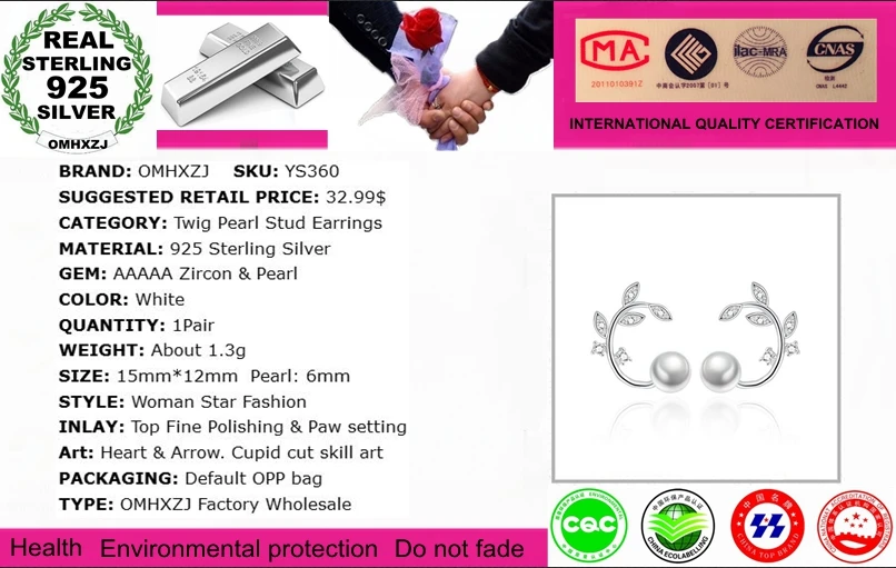 OMHXZJ оптовая продажа925 пробы серебряные серьги-гвоздики