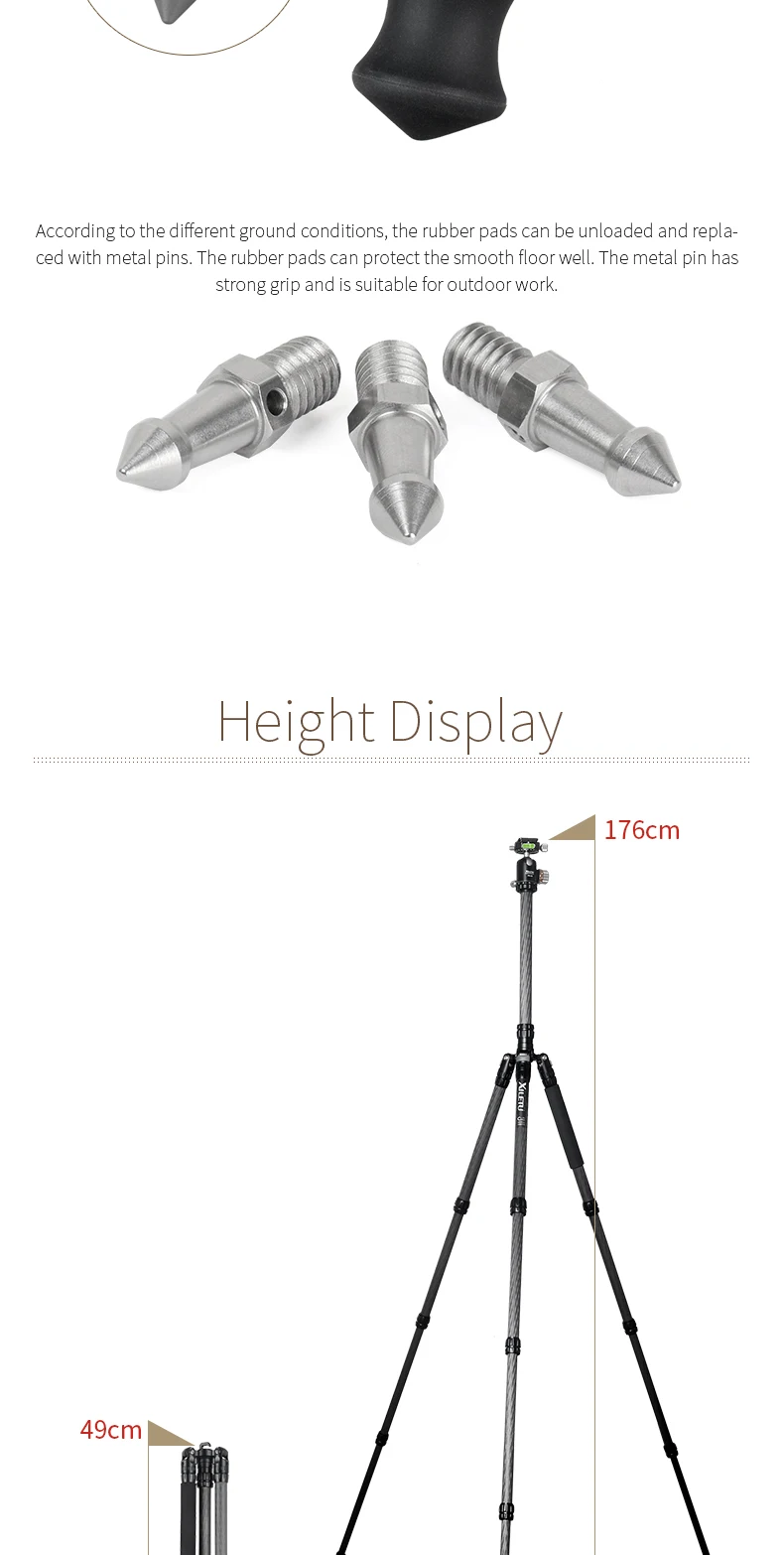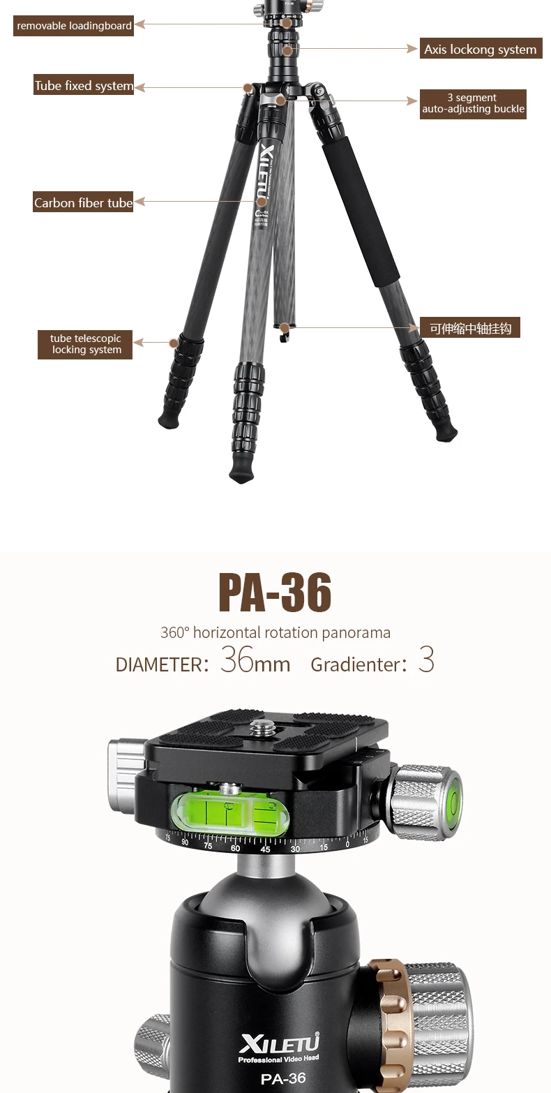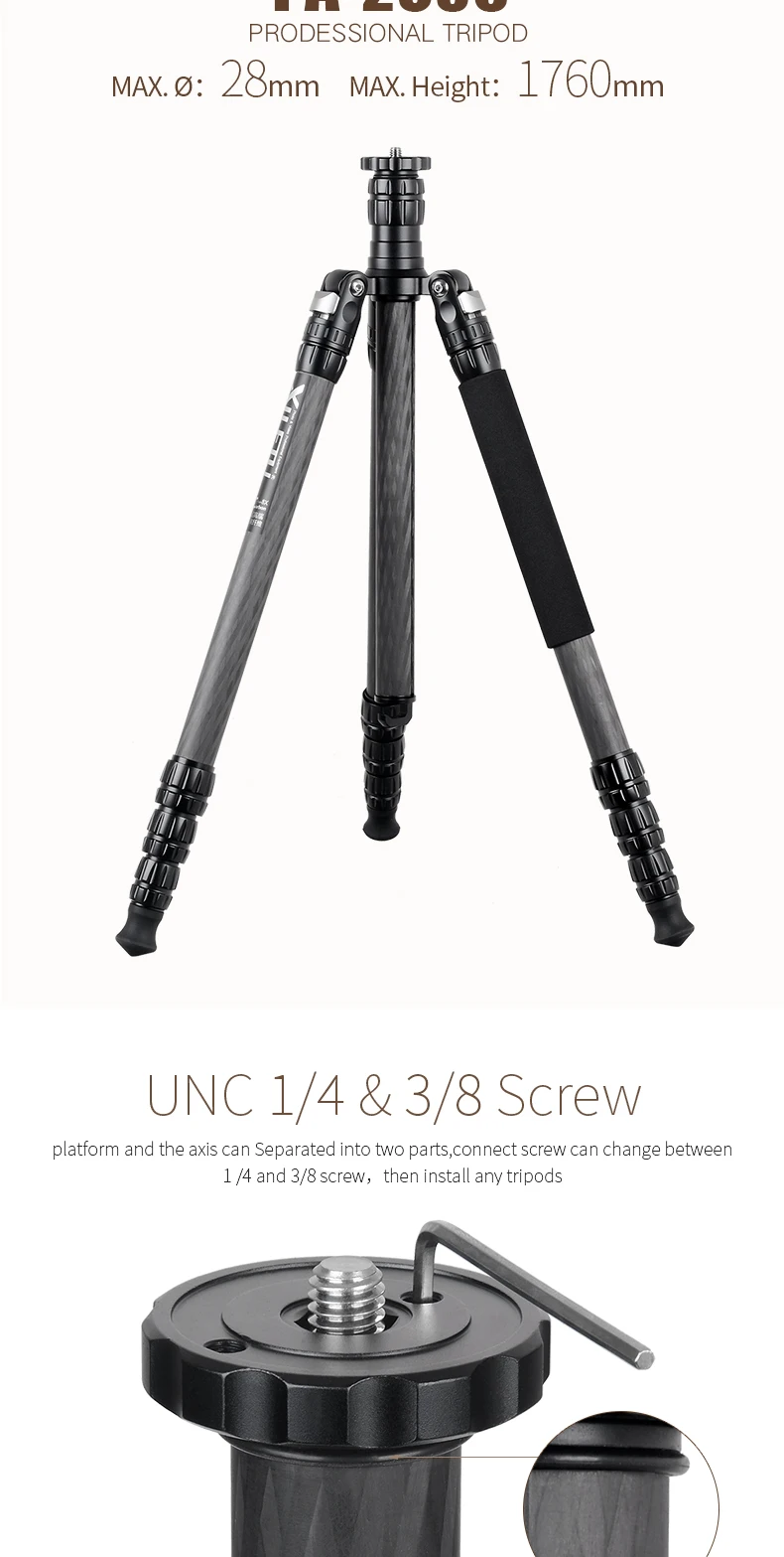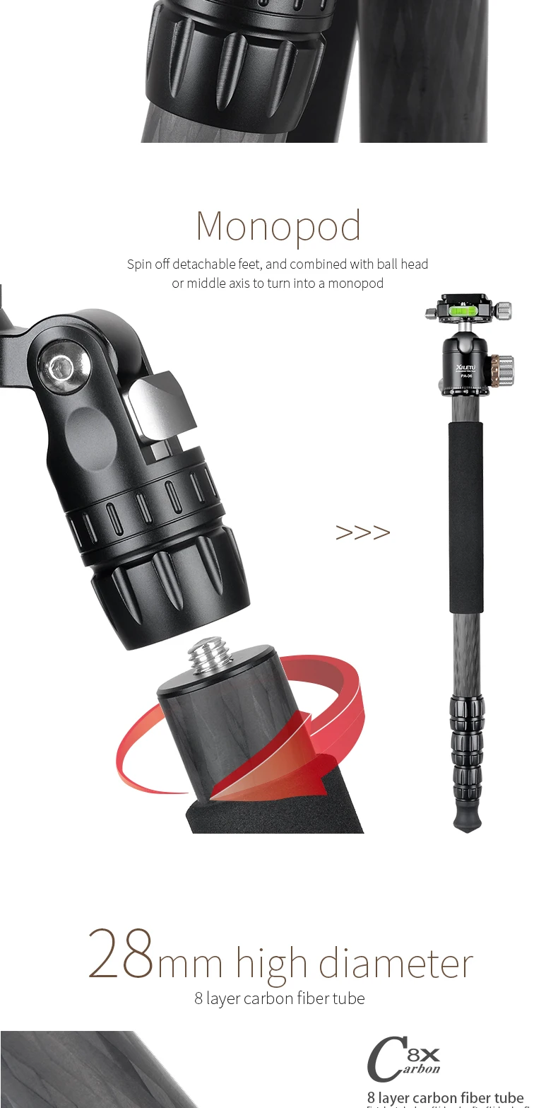 XILETU Профессиональный роскошный комплект штатива из углеродного волокна с диаметром трубки 28 мм/Грузоподъемность 18 кг/высота до 176 см