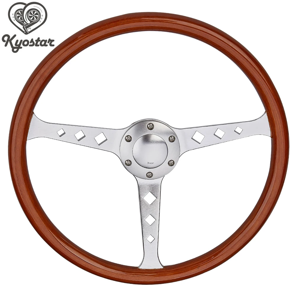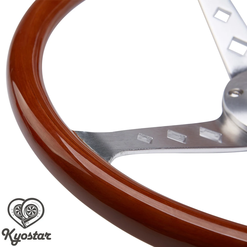 НАСТОЯЩИЙ ДЕРЕВЯННЫЙ руль Универсальный 380 мм 15 "гоночный автомобиль Винтажный Классический Деревянный матовый хром спица руль