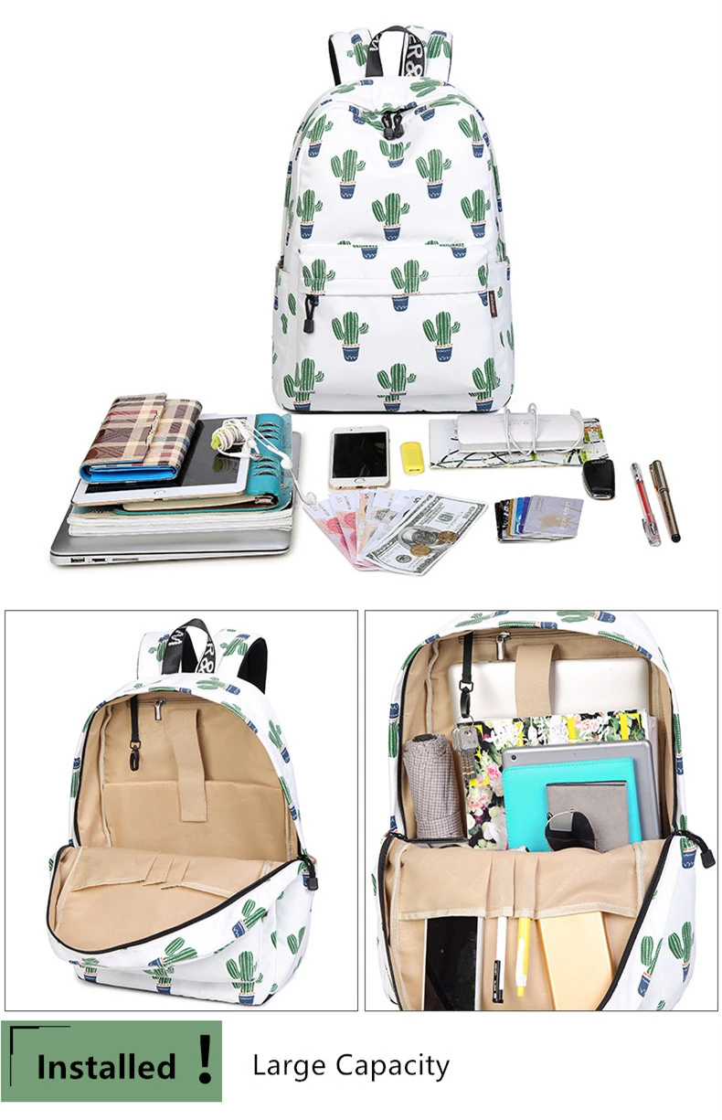 1. Материал: прочный водостойкий полиэстер (но не полностью водонепроницаемый); Гладкая прочная молния. 2. Размеры: большой рюкзак: 30,5*42,5*13,5 см (Д * В * Ш) (1 шт.), проложенный карман для ноутбука подходит для большинства 15.6in ноутбук или ниже 15.6in; Вес: прибл. 0,65 кг. Небольшой рюкзак: 30*40*13 см (Д * В * Ш); 1 мягкий карман для ноутбука подходит для большинства ноутбуков 14 или более 14 дюймов; Вес: прибл. 0,6 кг. 3. Удобные: мягкая спинка и регулируемые лямки с воздушным потоком обеспечивают комфорт на весь день. Сумка имеет верхнюю удобную петельку для удобного захвата и подвешивания, добавленную универсальность для этой упаковки. 4. Прекрасный и уникальный узор привлечет внимание всех. Он доступен для всех типов мероприятий для использования студентами, повседневного использования или путешествий. Посылка Содержание: 1 шт Рюкзак