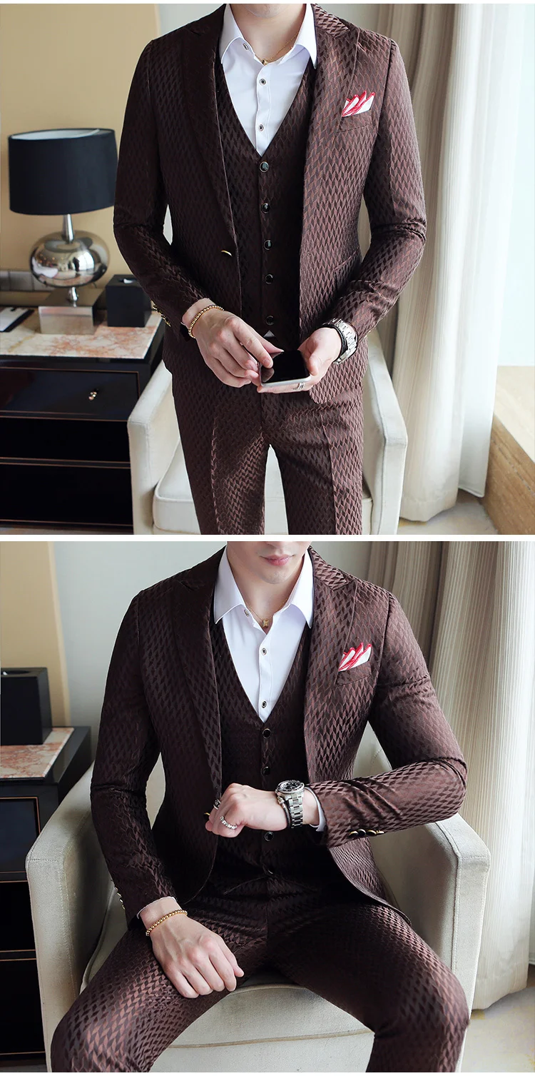 Красный, костюм на выпускной вечер, роскошные ЖАККАРДОВЫЕ мужские формальный костюм к ужину мужской свадебный костюм белый черный Кофе серебряные ювелирные изделия элегантный костюм