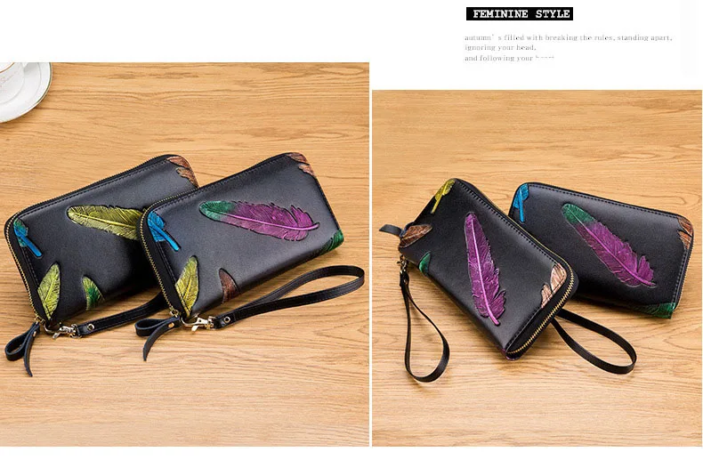 Женский Длинный кошелек из натуральной кожи на молнии визитница для