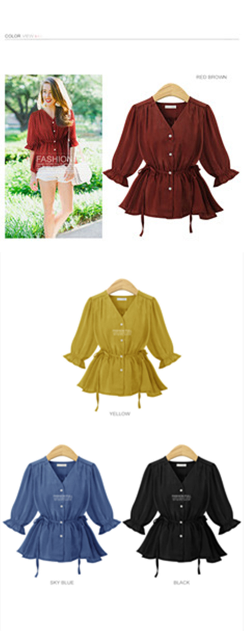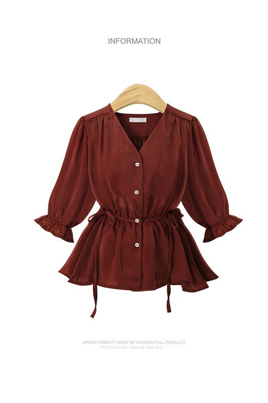 Женская шифоновая блузка с V образным вырезом открытыми плечами|Рубашки| |