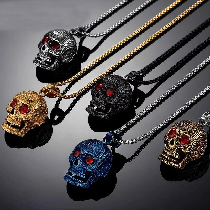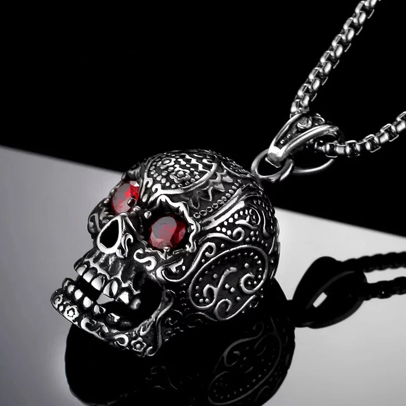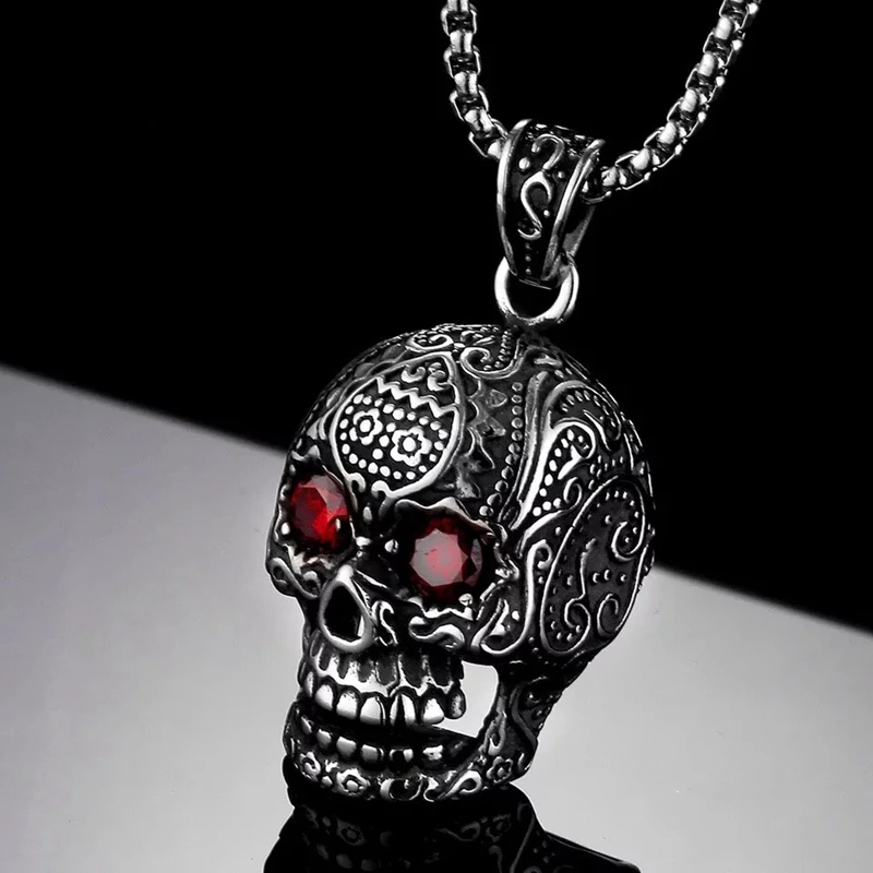 Ожерелье с подвеской в виде черепа с 3D красными глазами для мужчин 316L, нержавеющая сталь, байкер, панк, Ретро стиль, ювелирные изделия, подарок, Бесплатная Цепочка