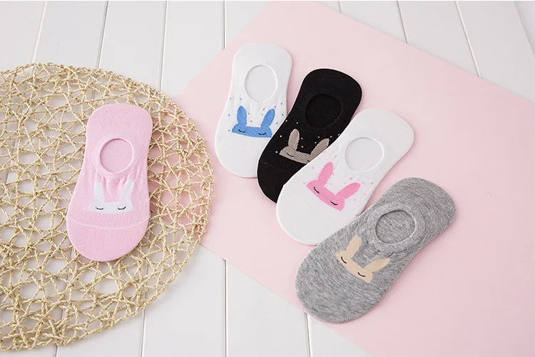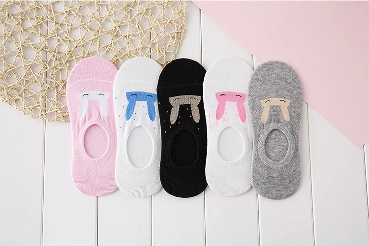 Женские невидимые короткие носки с ушками кролика удобные хлопковые башмачки