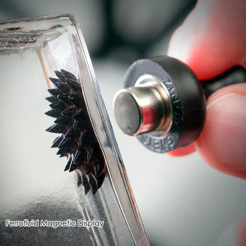 * Используйте магниты, чтобы перемещать феррожидкость вокруг и наблюдать за ее поведение