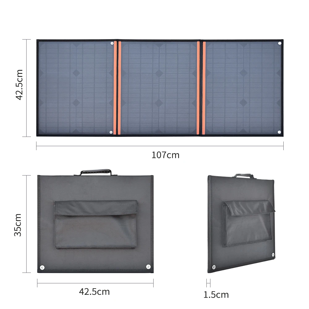 1. Материал: однокристальная батарея; 2. Рабочее напряжение: 18 в Напряжение открытого замыкания: 21,6 в 3. Мощность: 60 Вт; 4. Максимальный рабочий ток: 3.33A Ток короткого замыкания: 3,66a; 5. Рабочая температура: -20 ℃ ~ + 60 ℃; 6. Размер: Сложите: 425*350*15 мм Разворачивается: 1070*425*3 мм; 7. Вес: 1807 кг; 8. С двойным регулятором напряжения USB и разъемом постоянного тока;