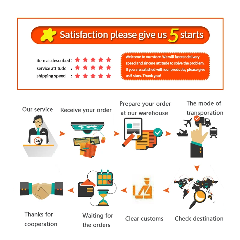1. Мы поддерживаем послепродажное обслуживание, если покупатель не получает товар вовремя, пожалуйста, свяжитесь с нами в удобное для Вас время. Мы свяжемся с почтовым отделением для получения подробной информации об этом пакете и свяжемся с вами. 2. Если этот продукт имеет какие-либо проблемы или дефекты при получении, пожалуйста, не волнуйтесь, просто свяжитесь с нами вовремя. Мы можем дать вам лучшее решение, и вы будете удовлетворены послепродажным обслуживанием. Спасибо!