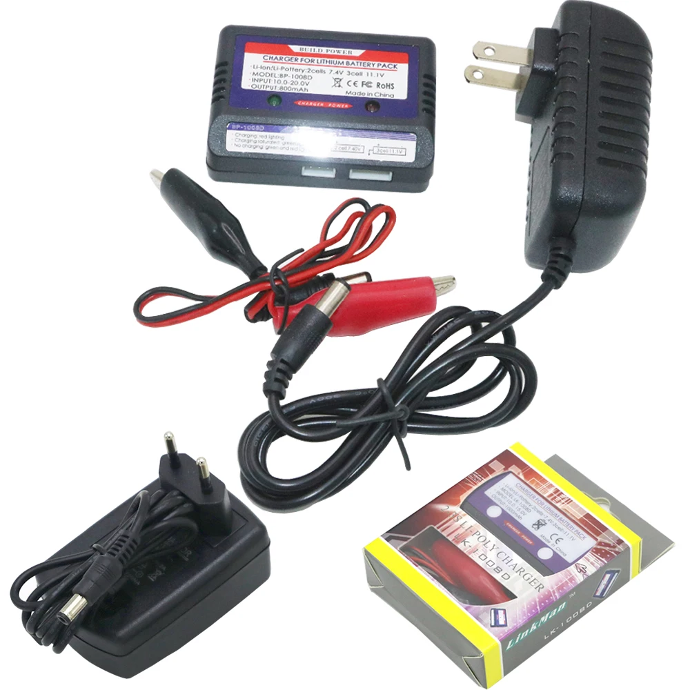 Входное напряжение: Постоянный ток 10-15 в Выходной ток: 800 мА (постоянный ток) Отсечки напряжение: 8,4 V, 12,6 V Батарея В комплект входит: 2-cell (7,4 V), 3-cell (11,1 V) Зарядное устройство для 7,4 v & 11,1 v литий-полимерный аккумулятор Батарея Индикатор зарядки, автоматическое отключение Съемные зажимы под крокодила для входа Безопасное и надежное зарядное устройство прямого тока Адаптер Вход: AC100V-240V, В переменного тока, 50-60 Гц, 0.6A. Адаптер Выход: DC 12,0 V, 2.0A Для балансирующего зарядного устройства Li-Po Параметры: Цвет: черный Размер: 67 мм x 47 мм x 21 мм. Вес: 74 г