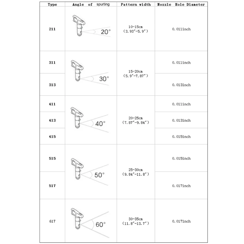 Тип наконечника распылителя: 211 #, 311 #, 411 #, 313 #, 413 #, 415 #, 515 #, 517 #, 617 # (опционально)