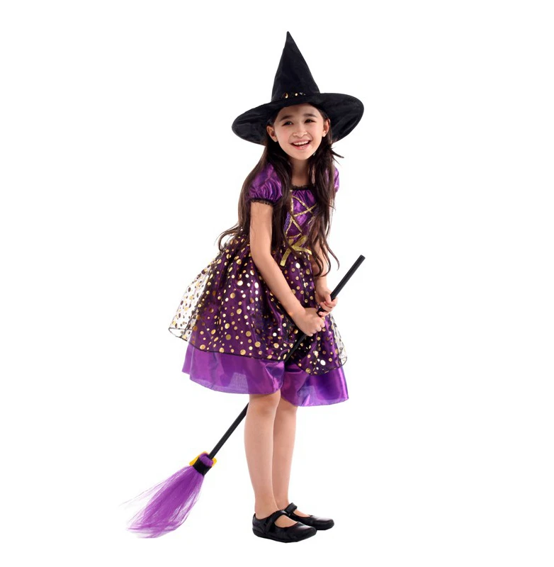 Костюм на Хэллоуин для детей; Костюм ведьмы; Нарядное платье для девочек; Шляпа; Детская фантазия; Карнавальные вечерние костюмы для детей на Рождество