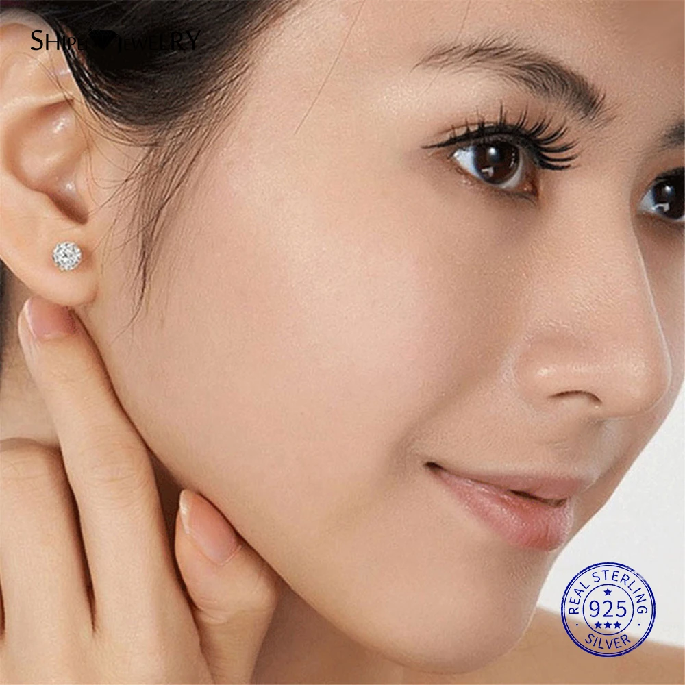 Женские серьги-гвоздики с белым сапфиром Shipei, 100% Стерлинговое Серебро 925 пробы, подарок на день рождения