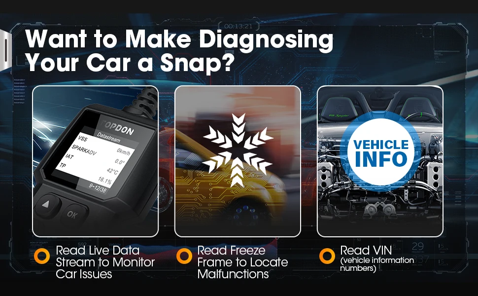 Этот сканер TOPDON OBD2 AL300 поможет эффективно определить, работает ли ваш автомобиль правильно. Тест датчика O2: проверяет состояние датчика кислорода в транспортном средстве, при резком падении пробега топлива или грубом холостом ходу, остановке двигателя и слабом ускорении. ✔️ Если вы DIYer, то Вы можете заменить дефектный датчик O2 для предотвращения возможных повреждений каталитического преобразователя. Взять его механика для этого может стоить тысячи долларов. Бортовой тест на монитор: обнаруживает, есть ли у двигателя какие-либо проблемы со сжатием или сжатием на том или ином цилиндре, которые не являются достаточно тяжелыми для запуска контрольной лампы двигателя. ✔️ Вы можете сохранить много догадок, и предотвратить возникшие проблемы от возникновения реальной проблемы вождения, без необходимости ждать несколько дней для некоторых OBD2 самотестов для запуска, И, возможно, включите контрольный свет двигателя. ✔Проверка EVAP: проверка утечек топливного пара, в том числе при отсутствии газового колпачка или свободного газового колпачка. ✔️ Вы можете начать это испытание, чтобы предотвратить испарение топлива из бака и способствует