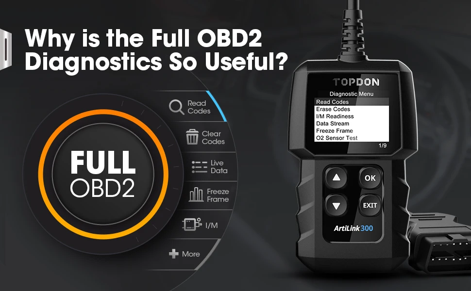 TOPDON ArtiLink300-это быстрое и доступное устройство считывания кода OBD2 со всеми 10 режимами тестирования OBD2, поиска DTC, функции plug-and-play и цветного дисплея. Этот сканер OBD2 позволяет пользователям начальной и самостоятельной сборки выполнить предварительный контроль для смоговых тестов, определить проблемы с излучением и сбросить контрольный свет двигателя.
