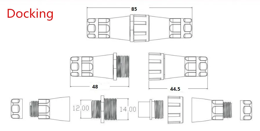 Разница между типом стыковки и типом панели: Тип стыковки симметричный габаритный, с водонепроницаемыми хвостовыми трубами на обоих концах и водонепроницаемыми на обоих концах. Тип панели имеет водонепроницаемую хвостовую трубу на одном конце и шестигранную гайку на другом конце для крепления к коробке. Тип панели имеет меньше водонепроницаемых хвостовых труб и несколько монтажных гаек, чем тип стыкового соединения.Защита IP67Водонепроницаемое резиновое кольцо: силиконПрименимый диаметр кабеля 4-7 мм (толщина оболочки провода 4-7 мм)Номинальный ток: 10А для 2-4 ядер, 5А для 5 ядер и вышеНоминальное напряжение: 220 В переменного токаРабочее напряжение: 500 ВВыдерживаемое Напряжение: 1500 В