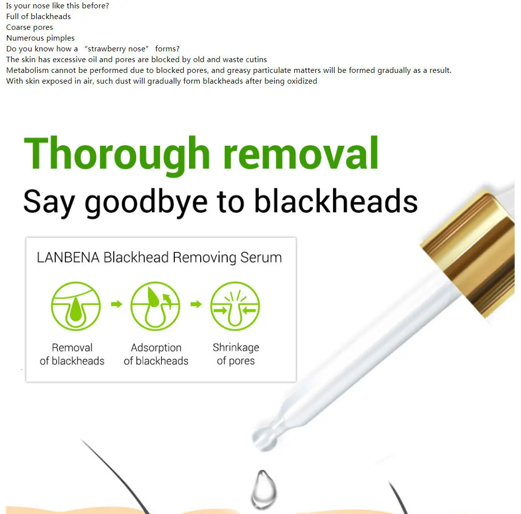 Сыворотка для удаления черных точек LANBENA, глубокая поры, акне-прыщей, бережное Удаление прыщей, лечение угрей, сужение пор, очищение кожи, 15 мл