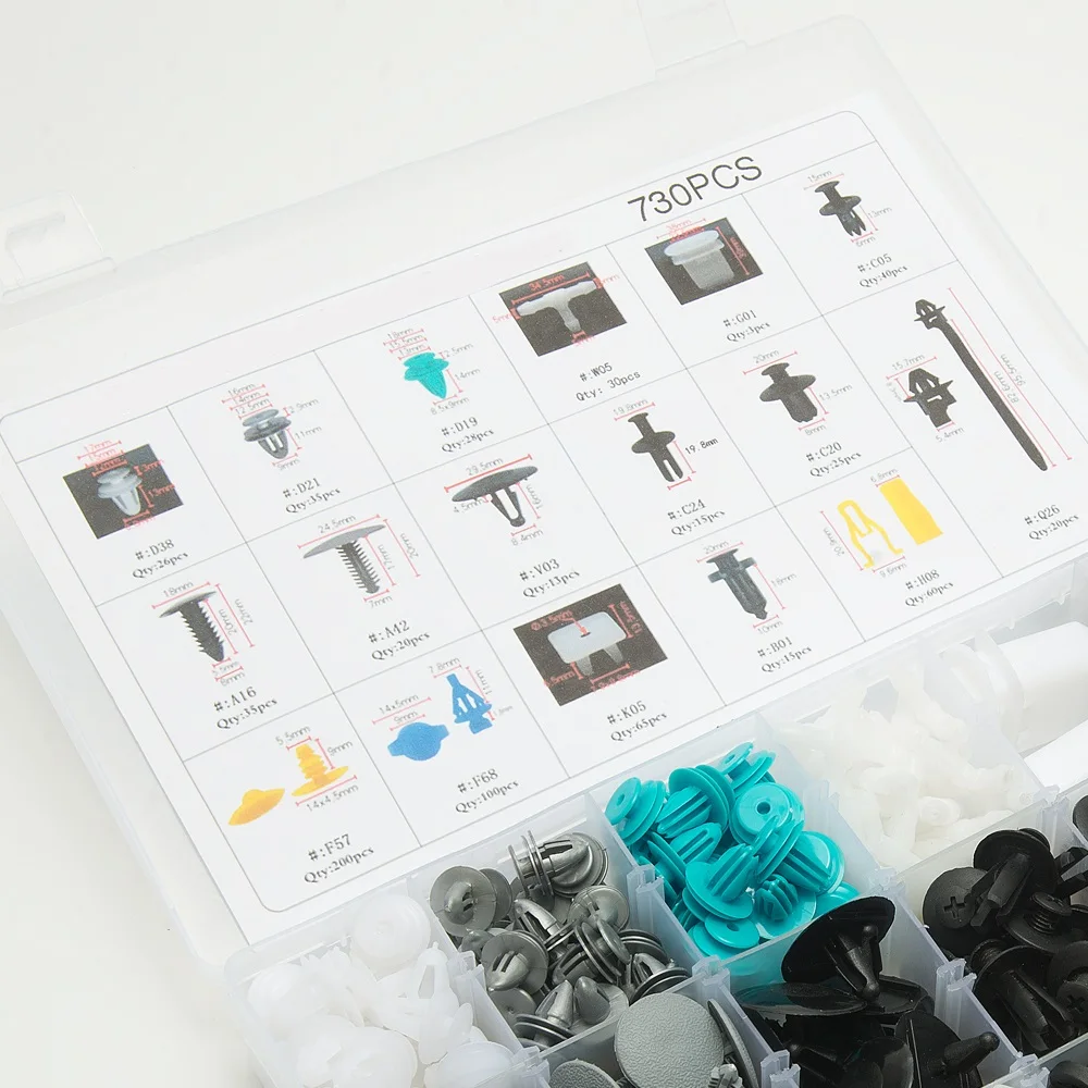 730 шт./лот авто крепеж нажимной зажим 17 видов смешанных пластин винтовой зажим Универсальный Автомобильный бампер фиксированный зажим TK-SLK730H