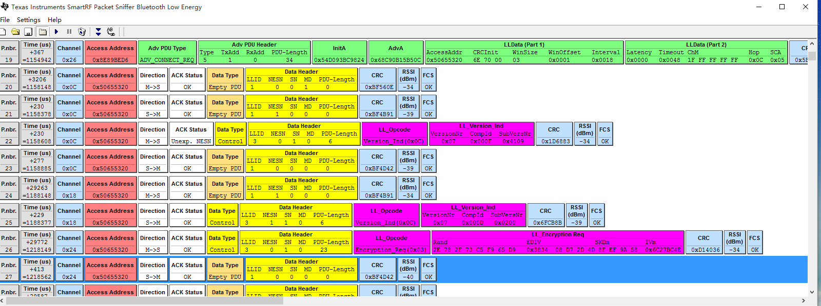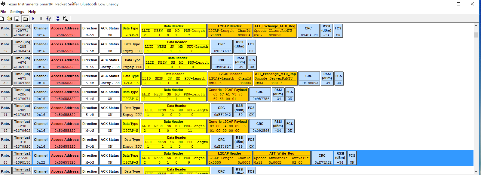 Инструмент Bluetooth BLE capture, который используется в сочетании с SmartRF Packet Sniffer, может достичь неизвлекаемых данных между устройствами Bluetooth и облегчить изучение базового протокола.