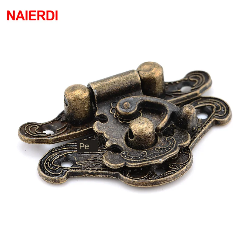 Антикварная бронзовая задвижка NAIERDI, 1шт, ювелирные замки для деревянных ящиков, декоративные задвижки, ручки для шкафов, 3 размера