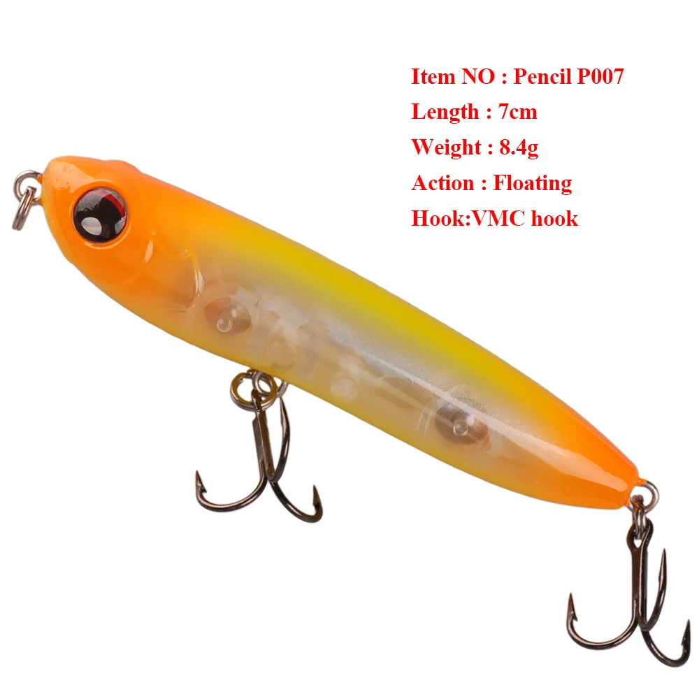 Смарт-приманка для рыбалки карандаш 70 мм 8,4g поплавок плавающая твердая приманка Искусственные воблеры VMC крючок Peche Peurre Карп рыболовные снасти Технические характеристики: 1. Тип: приманка-карандаш, приманка для рыбалки 2. Французские тройные Крючки VMC 3. Глаза: 3D-глаза 4.7 цветов, как показано на рисунке 5. Длина: 70 мм 6. Вес: 8,4 г 7. Действие: плавающий 8 посылка: полипропиленовая коробка с вставной картой В комплект входит: 1 шт., приманка для рыбалки карандаш