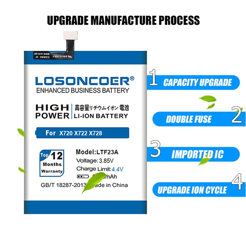 CE стандарт безопасности и окружающей среды: двойные функции защиты. Двойная IC и PCB электрическая плата защищают от разряда заряда и короткого замыкания.Losoncoer батарея бренд