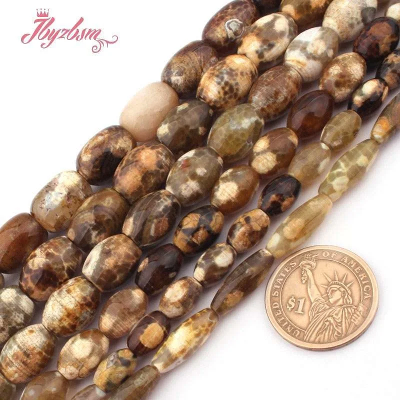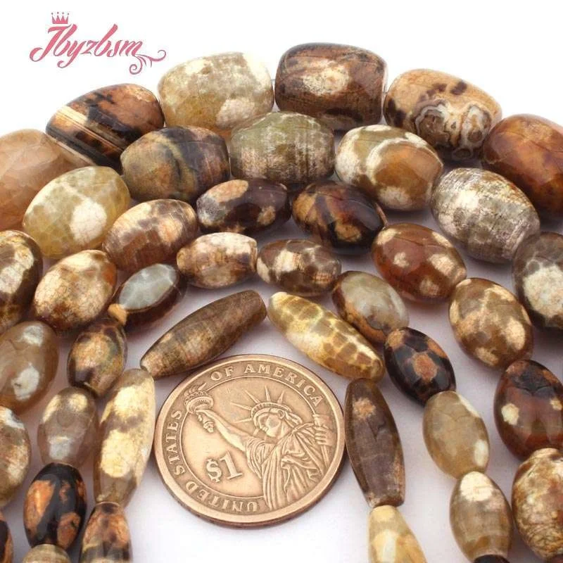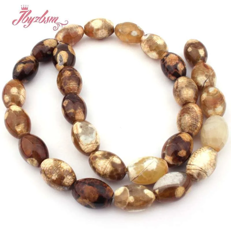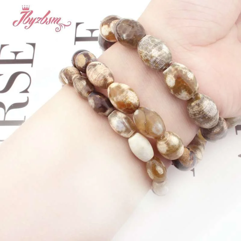 Olivary Brown Agates Natural Stone Loose Spacer Beads for DIY Accessories Women Men Necklace Bracelets Jewelry Making 15"